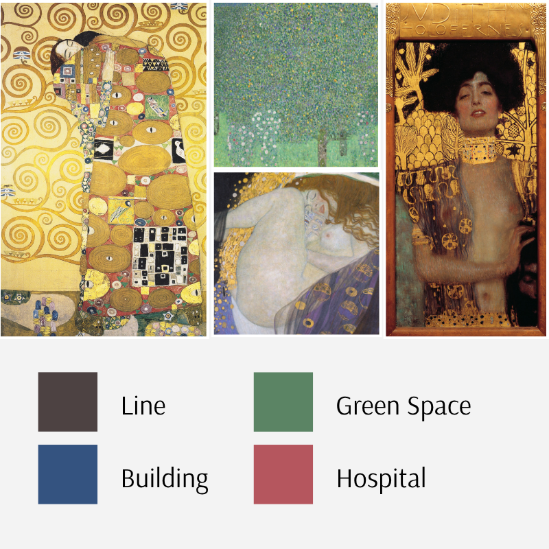 An homage to Gustav Klimt, the map reflects his signature gold-infused, radiant aesthetic.